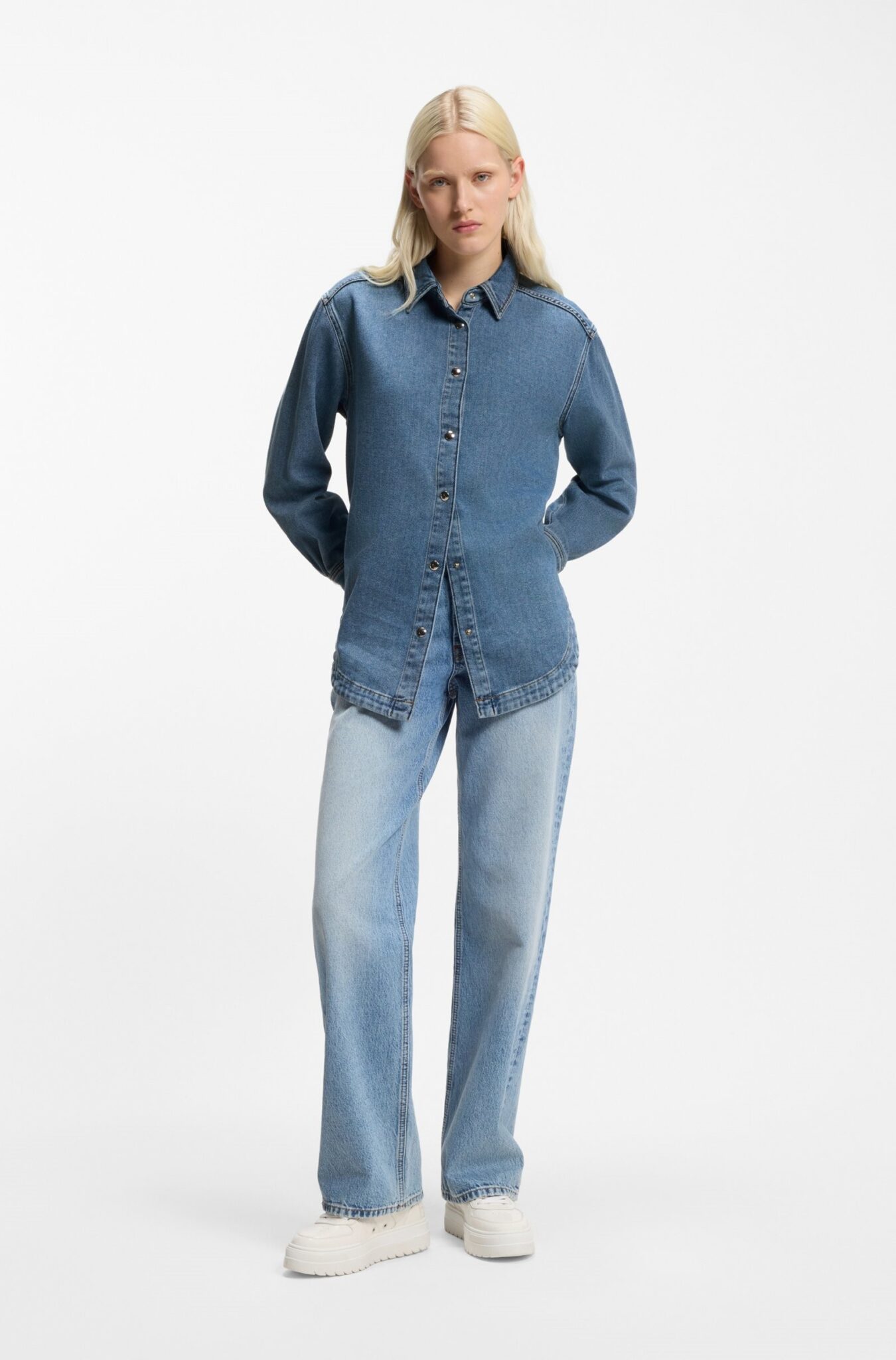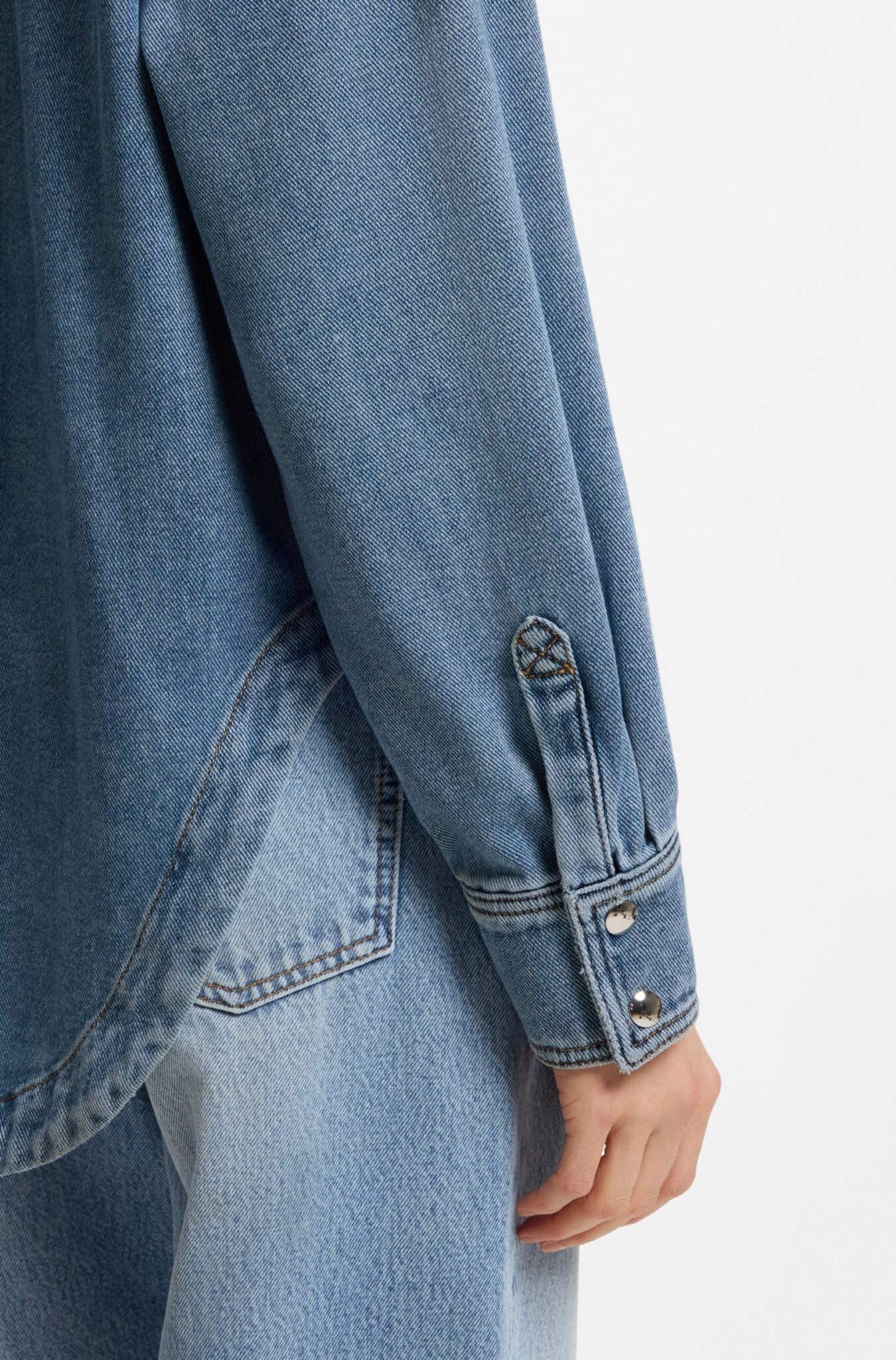 ΠΟΥΚΑΜΙΣΟ DENIM ΜΕ ΜΕΤΑΛΙΚΟ ΚΟΥΜΠΙ