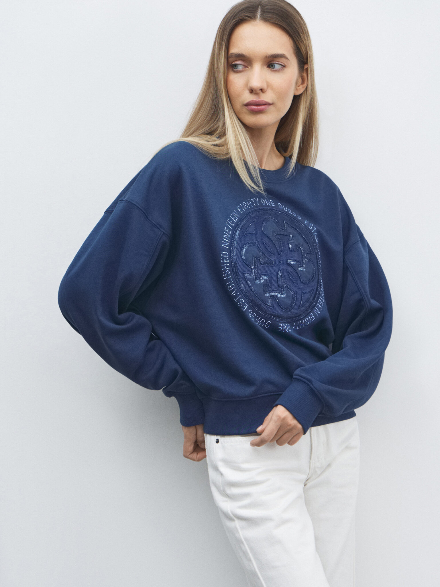 GUESS 4G LOGO HOTFIX SWEATSHIRTW5YQ07KB681 | PETROL