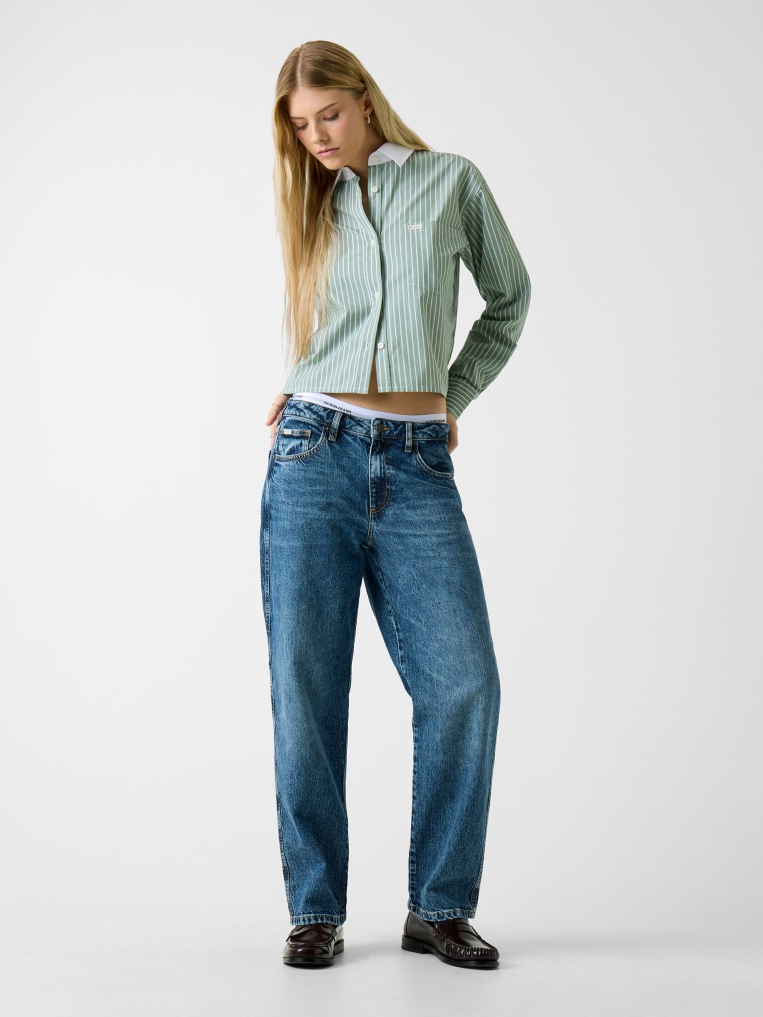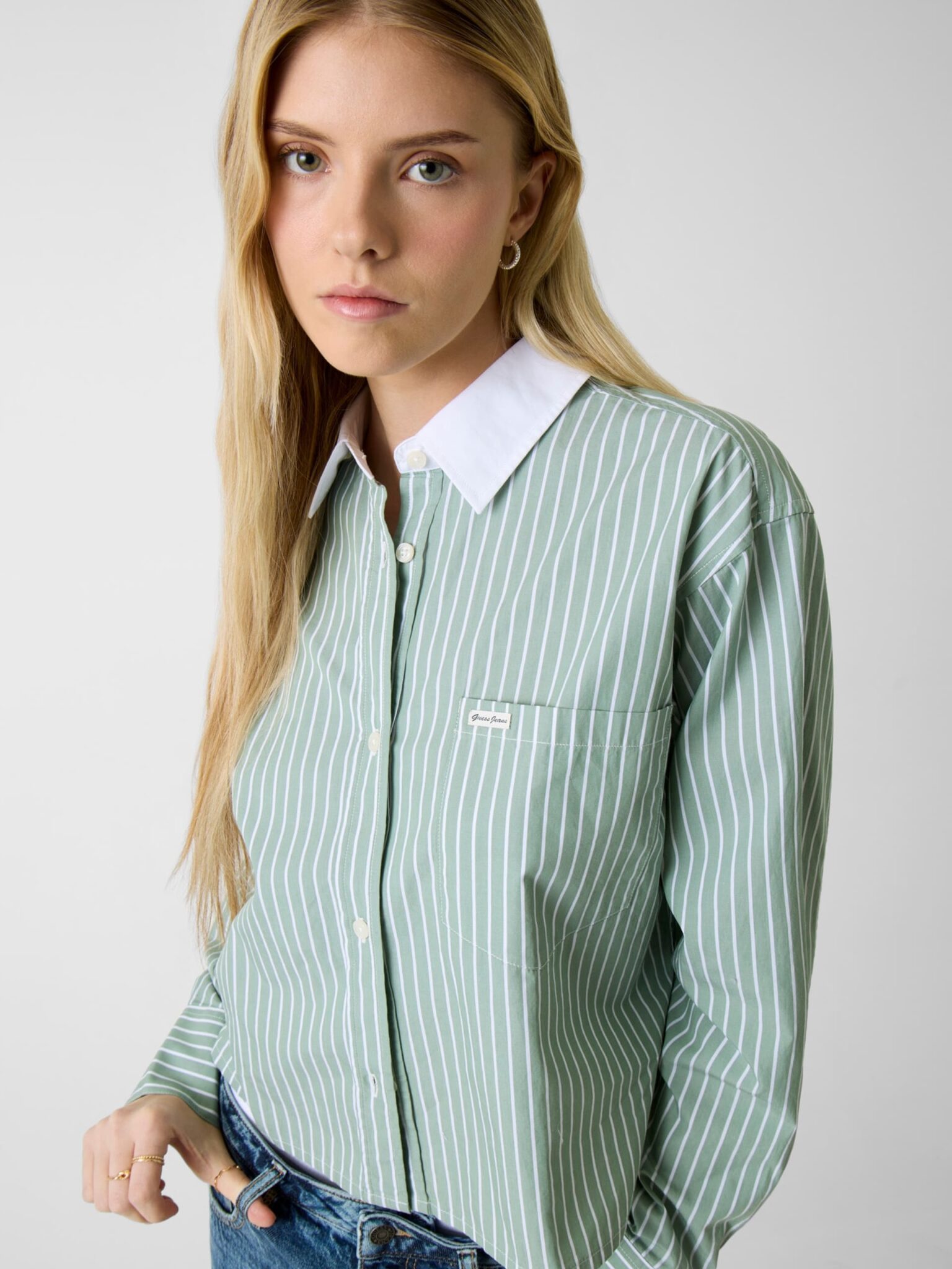 GUESS JEANS CROPPED WOVEN SHIRT ΠΟΥΚΑΜΙΣΟ ΓΥΝΑΙΚΕΙΟ | MINT GREEN