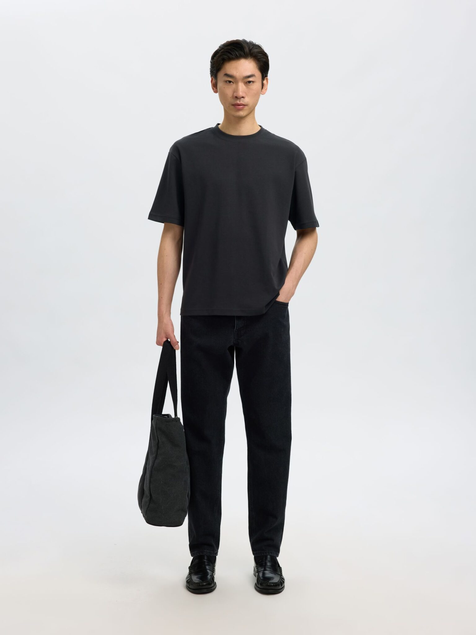 SELECTED SLMLOOSEOSCAR SS O-NECK TEE NOOS | BLACK